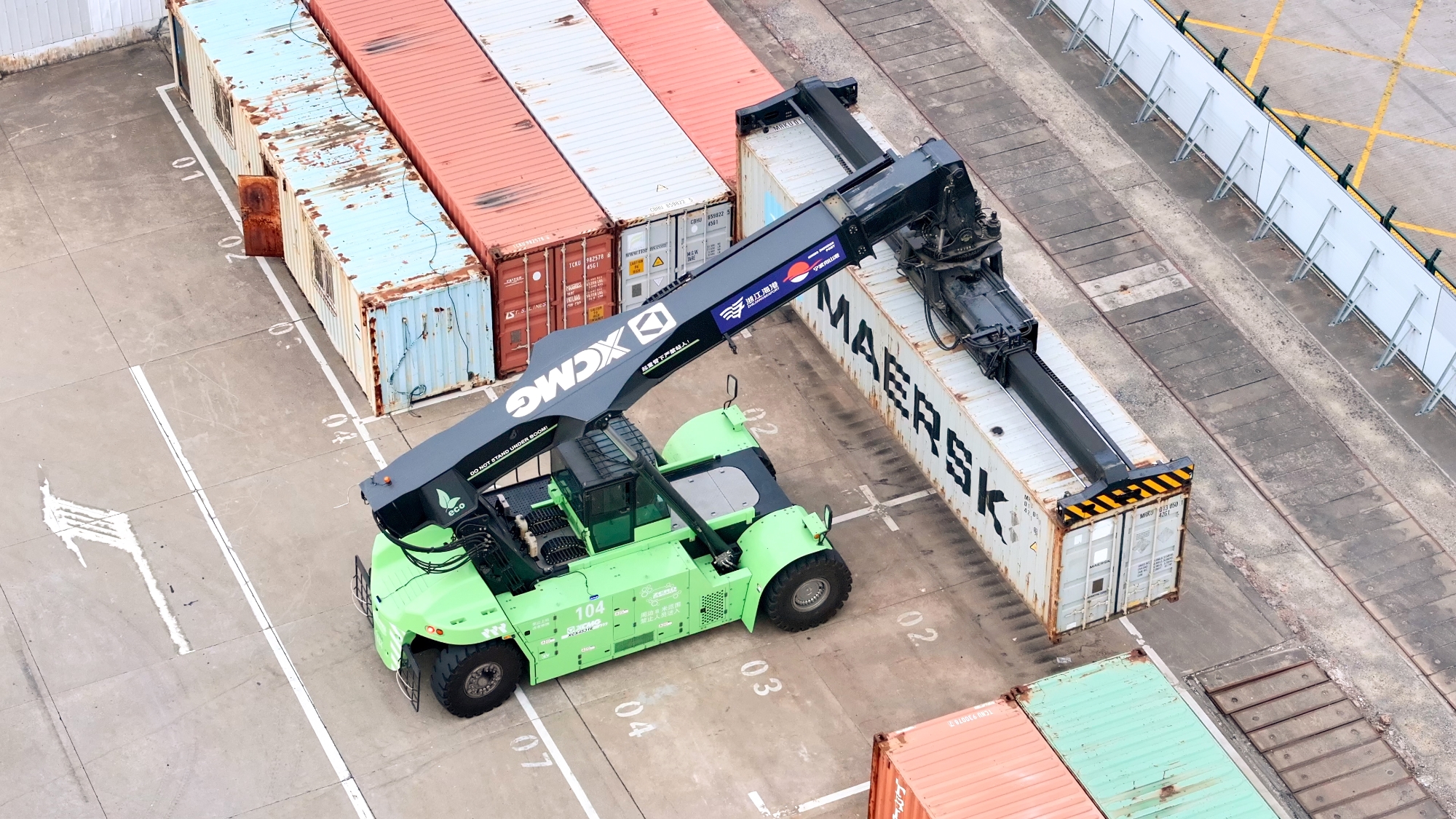 針對集裝箱堆存、轉(zhuǎn)運等核心場景,徐工打造了涵蓋電動正面吊、堆高機在內(nèi)的成套純電裝備矩陣。其中,領(lǐng)跑行業(yè)的電動堆高機,已成為高端綠色碼頭的標配。在浙江海港的多處關(guān)鍵作業(yè)前沿,這套方案正構(gòu)建高效、協(xié)同的智慧作業(yè)新生態(tài)。