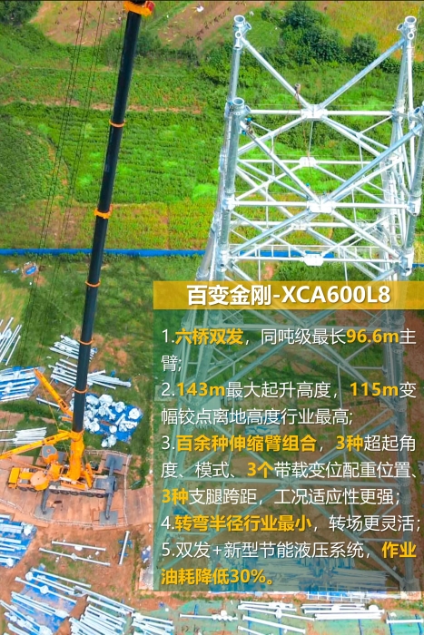 徐工“百變金剛”XCA600L8助力湖北送變電工程項(xiàng)目