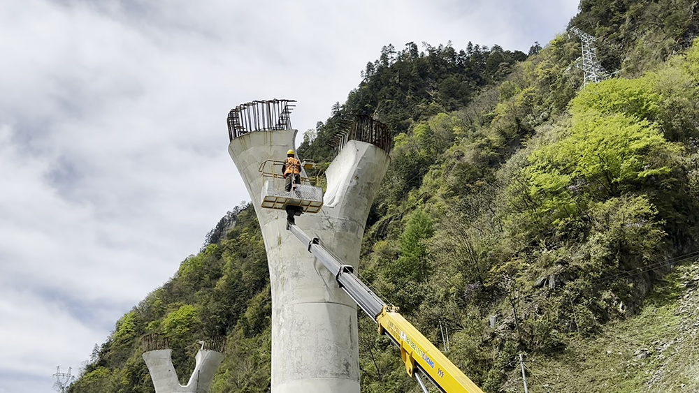施工環(huán)境惡劣,工期艱巨,徐工GKS23B高空作業(yè)車最大作業(yè)高度22.8m,最大作業(yè)幅度14.6m,采用新型高強度超薄鋼材,完美駕馭川西石礫沙地的施工環(huán)境,憑借穩(wěn)定、高效的舉升性能,出色完成橋墩施工任務,將藍牌產(chǎn)品各項作業(yè)性能發(fā)揮到極致。