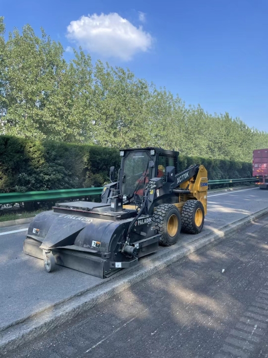 徐工滑移裝機(jī)搭配封閉式清掃器快速清理銑刨后的路面。