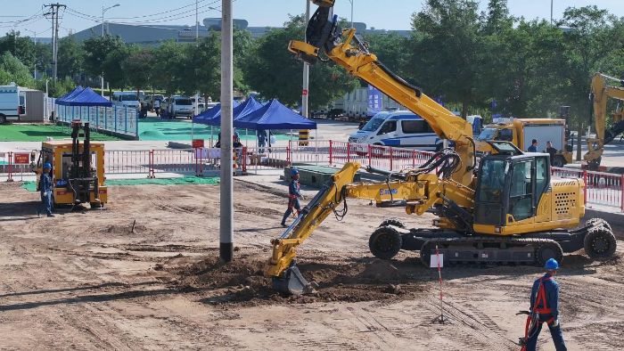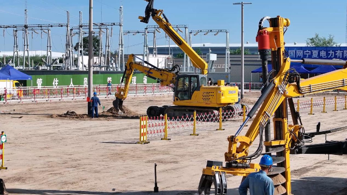 在寧夏現(xiàn)場(chǎng)的應(yīng)用中,徐工開(kāi)挖立桿一體機(jī)的安全性和效率出色,完成一套完整工序(挖坑-放置預(yù)制件-抓桿-豎桿-回填土-夯實(shí))僅需18分鐘,比競(jìng)品效率快三分之一。