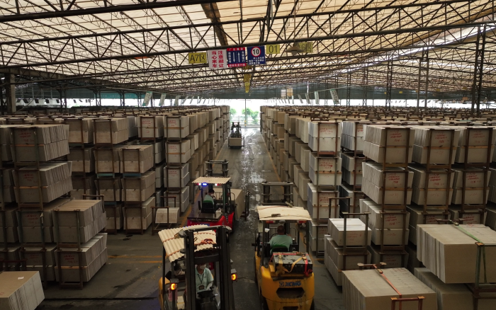 在華南區(qū)某大型陶瓷廠內(nèi),十幾臺徐工重載高壓鋰電叉車正在進行繁忙的搬運裝卸工作,為即將到來的市場旺季做好準備。