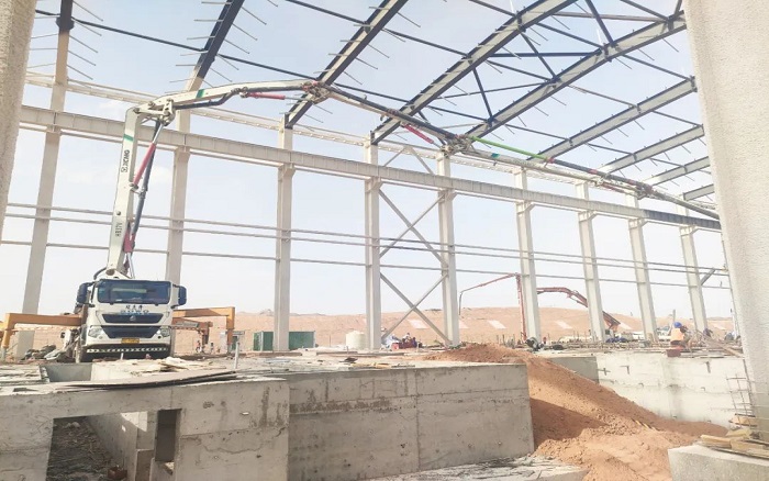 項目中后期以地面作業(yè)為主,鋼結(jié)構(gòu)廠房受限于空間操作,對設(shè)備的動力和靈活提出了較高要求。最小起臂高度僅7.8米的徐工HB37V,靈活的通過性和操控性讓施工作業(yè)提質(zhì)增速,為項目施工破解難題。