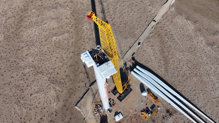 近日,徐工XLC18000M(1300噸級)履帶起重機,在我國華北地區(qū)150萬千瓦風儲基地項目現(xiàn)場,順利完成項目首臺10兆瓦大型風電機組吊裝,為國家風電發(fā)展再添新動力。
