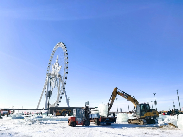 本屆哈爾濱冰雪大世界以“冰雪同夢 亞洲同心”為主題,園區(qū)設(shè)計和建設(shè)充分融入2025年第九屆亞冬會元素,打造一座更加氣勢恢宏、美輪美奐的冰雪主題樂園。在這個以冰雪鑄造的王國中,徐工中小型挖掘機(jī)負(fù)責(zé)運(yùn)輸冰塊的重要工作,展現(xiàn)了它們力大無窮的一面。