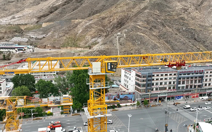 在祖國西南的雪域高原,堆龍德慶的藏語意為“上谷極樂之地”,位于拉薩河與堆龍河兩岸,平均海拔4500米,念青唐古拉山的兩條支脈,逶迤縣境南北。4500米的高海拔作業(yè),空氣稀薄、晝夜溫差極大、風(fēng)力強、風(fēng)速大、極端天氣多,都是徐工塔機面臨的嚴峻工況考驗。