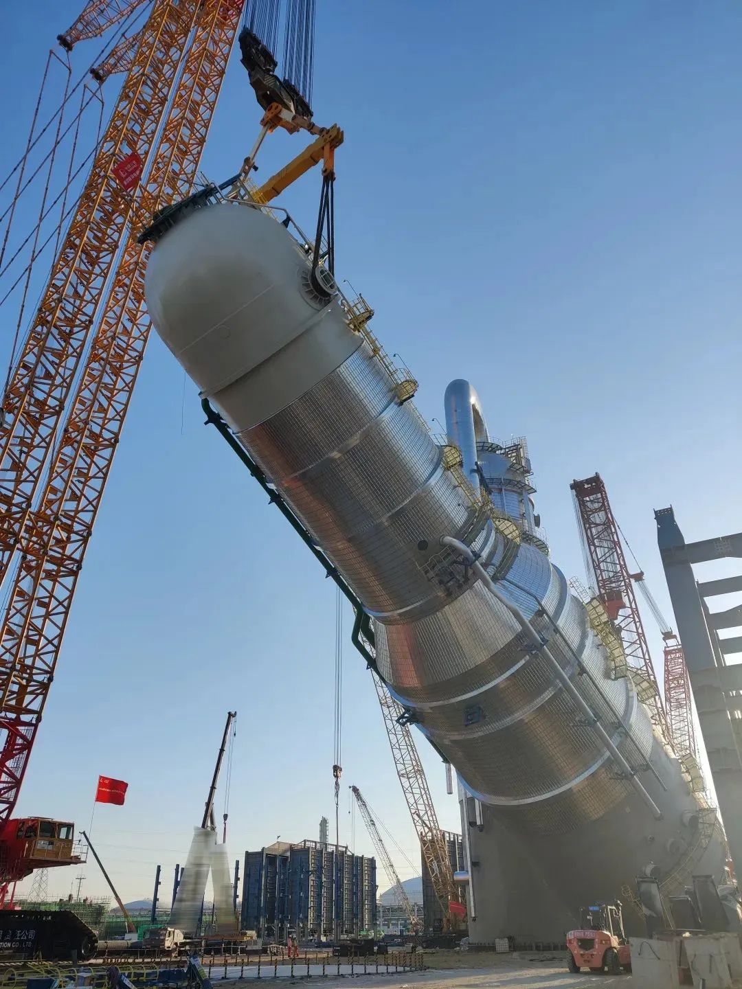 作為大型石化項(xiàng)目建設(shè)的重要環(huán)節(jié),此次急冷水塔設(shè)備的成功吊裝,為項(xiàng)目按期投產(chǎn)奠定了堅(jiān)實(shí)基礎(chǔ)。項(xiàng)目建成后,將助力當(dāng)?shù)卮蛟焓澜缫涣鞯?/span>綠色生態(tài)石化基地,為實(shí)現(xiàn)環(huán)境保護(hù)與經(jīng)濟(jì)發(fā)展的雙贏目標(biāo)提供有力支撐。