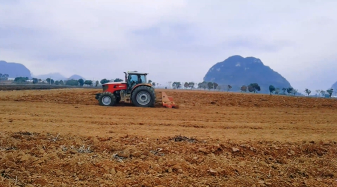 在完成耕深約50厘米的犁地作業(yè)后,牽引著3米幅寬的重型旋耕機穩(wěn)穩(wěn)駛過蔗田,對25厘米耕作層進行精細化碎土整地,有效改善板結土壤結構。