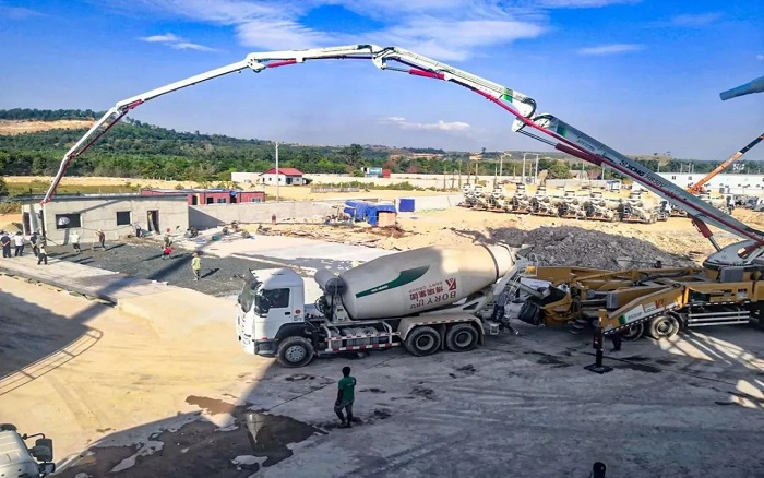此外,數(shù)十臺徐工攪拌車也活躍在柬埔寨工業(yè)園區(qū),徐工 HB50V 為園區(qū)基礎地坪地面建設施工按下 “加速鍵”。