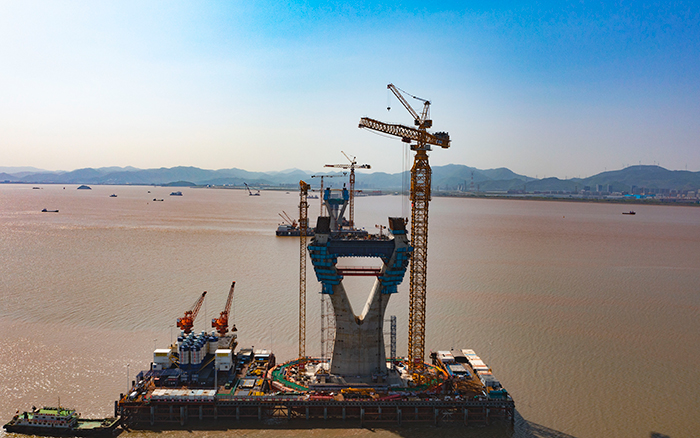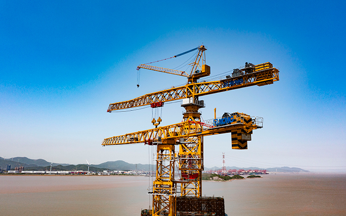 初夏時(shí)節(jié),東海之畔,徐工XGT7300-260S、XGT8300-320S揮舞鐵臂,如“定海神針”矗立深藍(lán),助力舟山六橫大橋二期工程青龍門大橋主塔施工,“海上巨龍”穩(wěn)扎穩(wěn)打向上攀升。