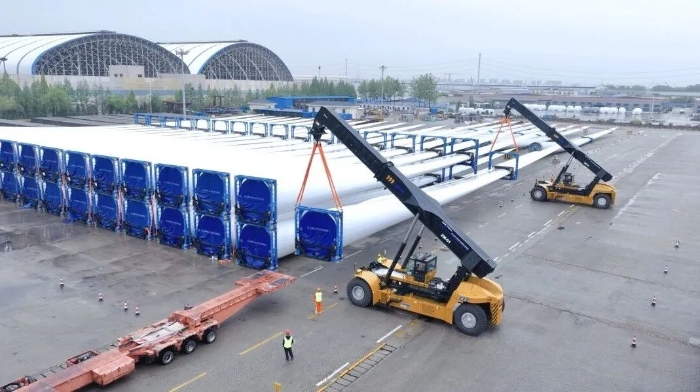 目前,XCS70KS風(fēng)電正面吊已在揚州港順利完成多次大型風(fēng)電部件裝卸任務(wù),其穩(wěn)定高效的性能成為長三角地區(qū)智慧口岸建設(shè)的標桿力作。該裝備的成功應(yīng)用,不僅全面提升了港口運營質(zhì)效,也為全國港口的智能化升級提供了可復(fù)制、可推廣的徐工-揚州港樣板。