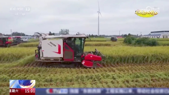9月20日,中央電視臺新聞頻道《新聞直播間》“在希望的田野上”欄目將鏡頭對準湖北應(yīng)城,報道了八臺徐工XR720履帶式谷物聯(lián)合收獲機在當?shù)亻_展大規(guī)模糯稻收割的豐收盛景——履帶滾滾,金黃的稻穗迅速被吞入機器,頃刻間完成收割、脫粒、清選等一系列作業(yè),顆顆飽滿的籽粒穩(wěn)穩(wěn)落入糧倉。