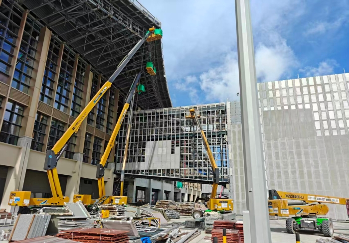 在三亞鳳凰機(jī)場T3航站樓這一重大基礎(chǔ)設(shè)施建設(shè)現(xiàn)場,由三臺XGS34ACK-Li與兩臺XGS28ACK-Li組成的鋰電高空作業(yè)編隊創(chuàng)造了令人矚目的施工效率。面對航站樓內(nèi)部復(fù)雜的施工環(huán)境,展現(xiàn)出了卓越的協(xié)同作戰(zhàn)能力。