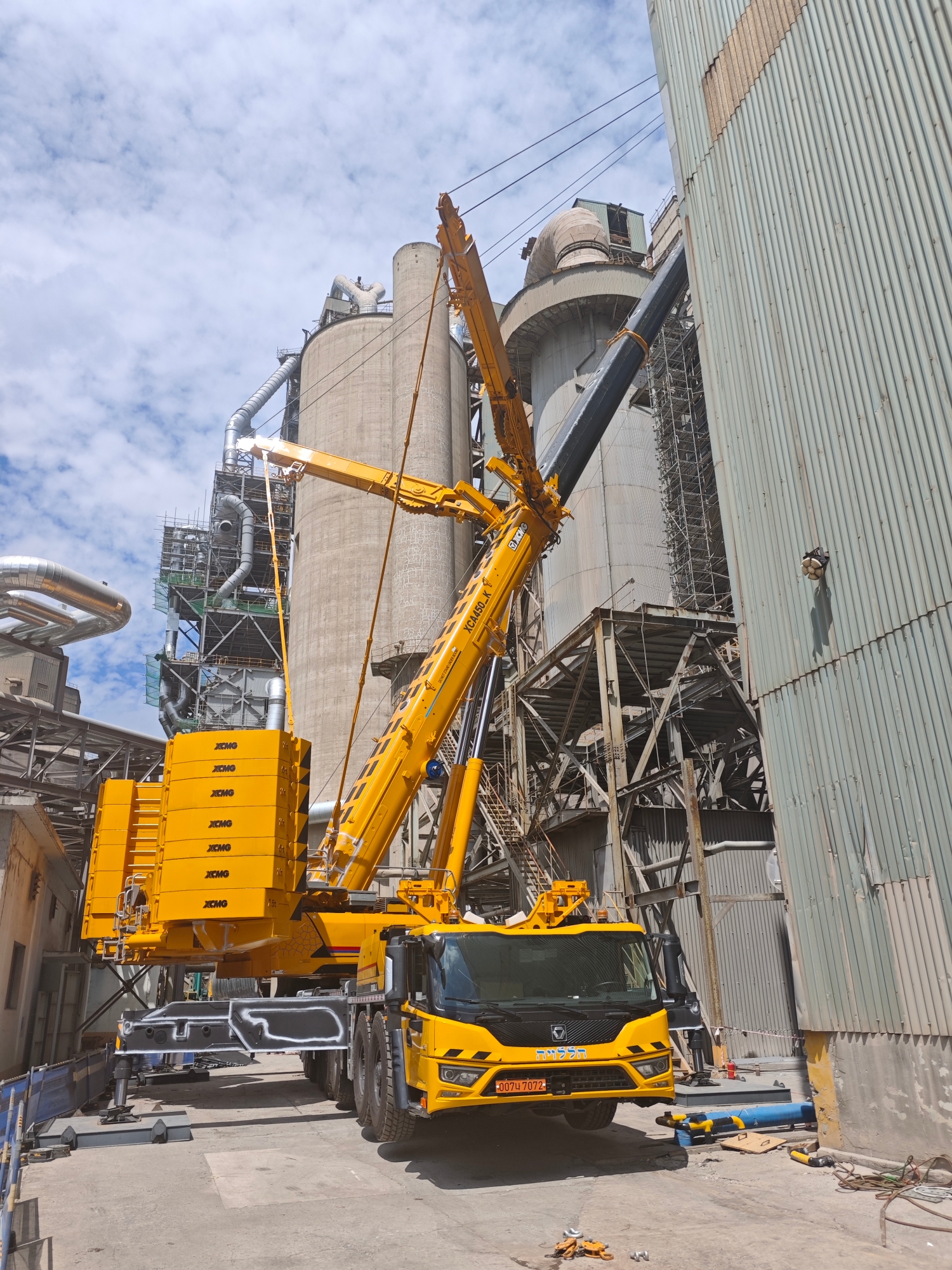 在現(xiàn)代大型水泥廠的建設(shè)與升級(jí)改造中,設(shè)備安裝往往是決定工程進(jìn)度的關(guān)鍵環(huán)節(jié)。近日,在某現(xiàn)代化水泥廠施工現(xiàn)場(chǎng),一臺(tái)徐工XCA450_K全地面起重機(jī)憑借其卓越性能,成功完成了一項(xiàng)超起工況下的高難度吊裝任務(wù),為項(xiàng)目的順利推進(jìn)提供了堅(jiān)實(shí)保障。