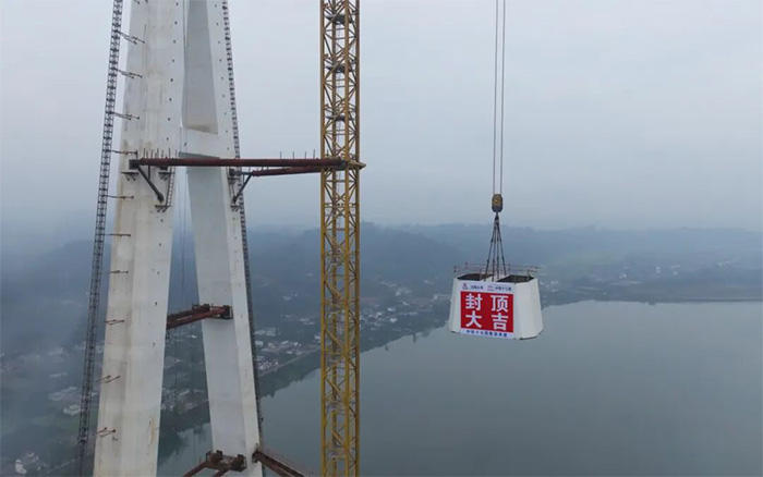 漢陽(yáng)湖岷江特大橋主塔順利封頂