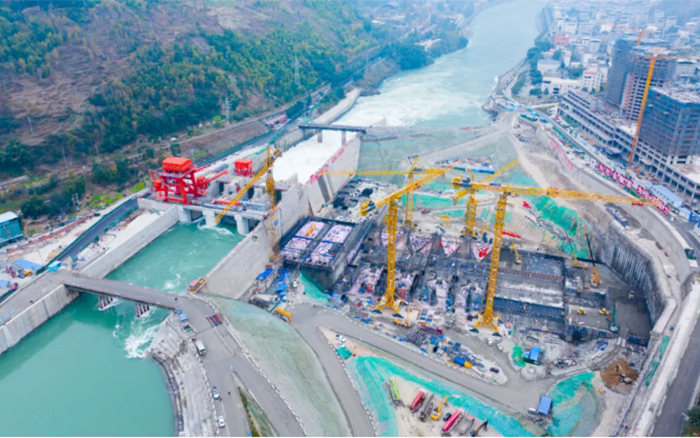 該水電站位于四川省樂山市金口河區(qū)境內(nèi),是四川省“十四五”重點(diǎn)建設(shè)項(xiàng)目,項(xiàng)目完成后,總裝機(jī)容量30萬(wàn)千瓦,預(yù)計(jì)年平均發(fā)電量15.03億千瓦時(shí),對(duì)促進(jìn)國(guó)家清潔能源基地建設(shè)、實(shí)現(xiàn)“雙碳”目標(biāo)意義重大。項(xiàng)目主要設(shè)有五孔泄洪閘、發(fā)電廠房、兩岸混凝土重力壩、魚道等水工建筑物,壩體最高54米。