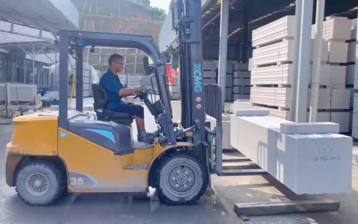湖南某石材廠內(nèi),徐工叉車新 E 系列電動(dòng)平衡重叉車,耀世登場(chǎng)!