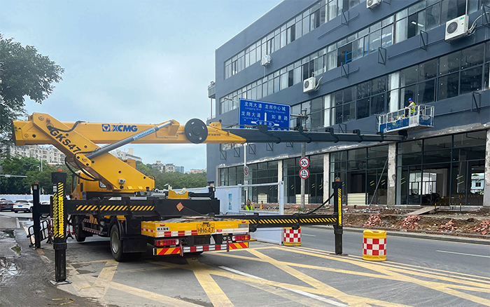 本次施工恰逢傍晚高峰期,時(shí)間緊、任務(wù)重,且水電路管道安裝需要長(zhǎng)時(shí)間、高精準(zhǔn)的持續(xù)性作業(yè),對(duì)高空車(chē)性能要求較高。為避免占道施工阻礙交通,徐工GKS47高空作業(yè)車(chē)在街道對(duì)面的臨時(shí)停車(chē)區(qū)域快速展車(chē),作業(yè)斗搭載3名施工人員和管路材料平穩(wěn)伸出20余米,橫跨整條街道,直抵商鋪外立面的作業(yè)地點(diǎn),憑借獨(dú)有的高精度比例閥驅(qū)動(dòng)控制技術(shù),實(shí)現(xiàn)微小流量的精準(zhǔn)控制,使工作平臺(tái)毫米級(jí)的位置調(diào)節(jié),便于工作平臺(tái)位置精調(diào);柔性制動(dòng)讓操作更加舒適,能夠精準(zhǔn)識(shí)別操作員的操作意圖,制動(dòng)體驗(yàn)平穩(wěn)、低沖擊、小晃動(dòng),以“微動(dòng)性、安全性、高效率、大跨距”產(chǎn)品特點(diǎn)完美應(yīng)對(duì)此次施工任務(wù)。