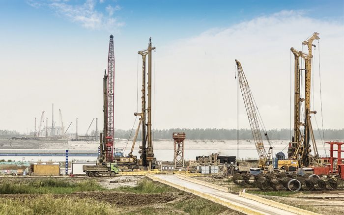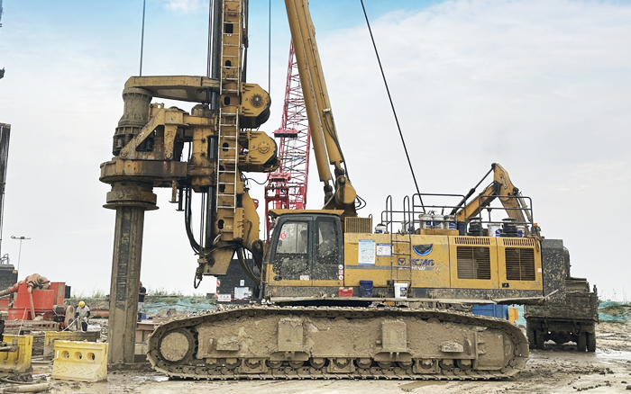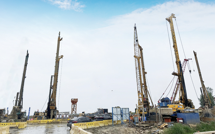 徐工XR550D、XR580HD等多臺徐工大噸位旋挖鉆機(jī)群憑借精湛的技術(shù)和卓越的性能,成功攻克了地層復(fù)雜、工期緊迫等多重難題,平均成孔周期68小時(shí),全面提速大橋樁基礎(chǔ)建設(shè)。