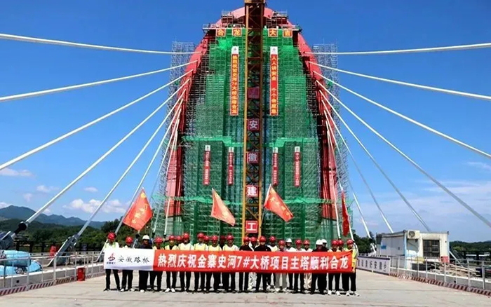 金寨史河7#大橋項目主塔順利合龍