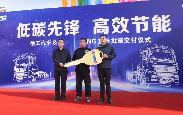 “低碳先鋒,高效創(chuàng)富”徐工天然氣牽引車200臺簽約暨批量交車儀式順利舉行,首批30臺徐工XG1H 燃?xì)鉅恳嚰w亮相并現(xiàn)場交付,協(xié)同西北客戶開啟低碳、高效運(yùn)輸新篇章。