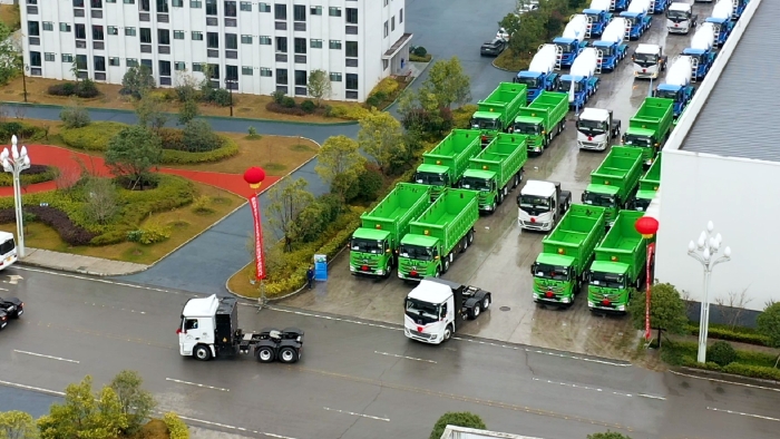近日,徐工新能源重卡百臺(tái)交付儀式盛大舉行。百余臺(tái)徐工新能源成套化運(yùn)輸設(shè)備整齊列隊(duì),氣勢(shì)恢宏,猶如一支綠色軍團(tuán),為四川區(qū)域綠色運(yùn)輸?shù)母哔|(zhì)量發(fā)展注入強(qiáng)勁動(dòng)力。