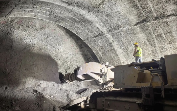 徐工XTR7/360懸臂式隧道掘進機具備強大的巖土開挖能力,操作平臺穩(wěn)定且具備高效的支護系統,并且在開挖過程中產生的粉塵和噪音較低,符合環(huán)保要求。基于以上優(yōu)勢,項目方果斷選擇徐工XTR7/360懸臂式隧道掘進機。