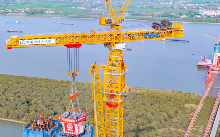 超級(jí)裝備賦能超級(jí)工程。4月10日,巢馬城際鐵路馬鞍山公鐵兩用長(zhǎng)江大橋項(xiàng)目建設(shè)迎來(lái)重要節(jié)點(diǎn),全球最大塔機(jī)徐工XGT15000-600S順利完成首節(jié)段鋼塔吊裝,大橋進(jìn)入到上塔柱的施工階段。