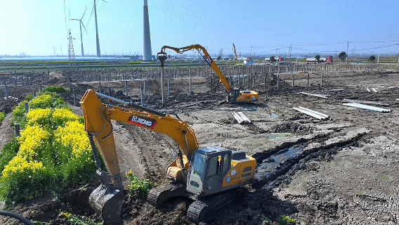 在揚(yáng)州178兆瓦光伏施工現(xiàn)場,徐工XE300GP打樁機(jī)正演繹著現(xiàn)代工程機(jī)械的超強(qiáng)實(shí)力——機(jī)械臂精準(zhǔn)起落間,10米預(yù)制樁以平均57s/根的節(jié)奏植入地層,樁基垂直度監(jiān)測儀實(shí)時(shí)顯示±5厘米的精度數(shù)據(jù)。