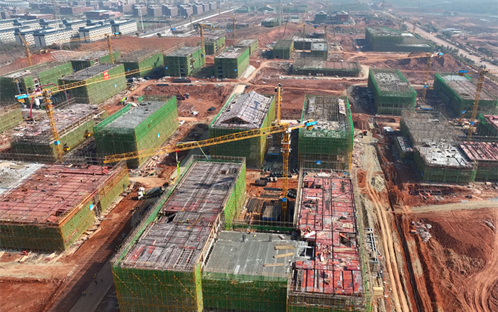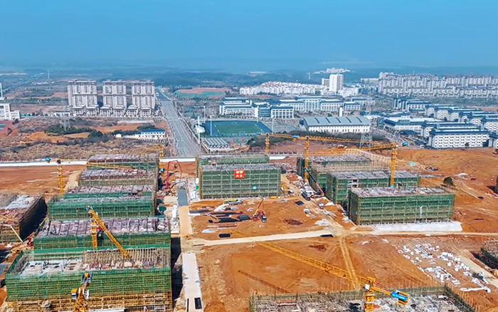 三江之口,七省通衢。在江西省九江市,37臺徐工XGT6013-6S1塔機批量參建南昌工學院共青校區(qū)項目,施工現(xiàn)場一片火熱,群塔施工緊張有序,“徐工金”成為現(xiàn)場最亮眼的一道景色。