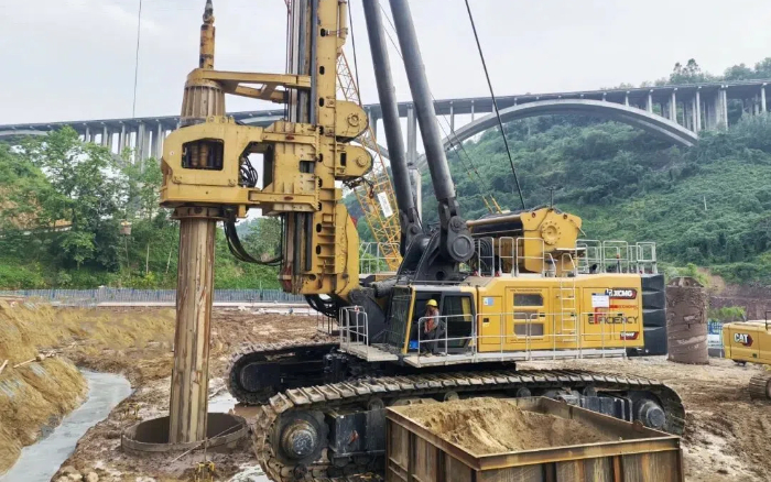 徐工旋挖鉆機憑借自主研發(fā)的智能加壓系統(tǒng)與自適應(yīng)扭矩控制技術(shù),成功克服硬質(zhì)灰?guī)r層鉆進效率低、孔壁易坍塌等難題,為后續(xù)墩柱澆筑和主橋合龍爭取了時間。