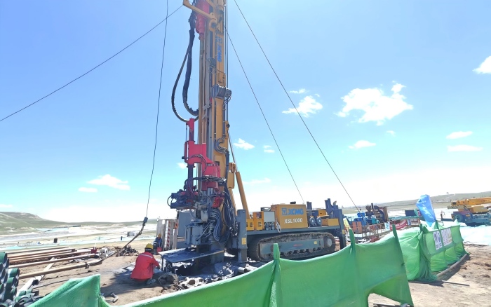 徐工XSL1000履帶式深井鉆機(jī)憑借扭矩大、提升力強(qiáng)、穩(wěn)定性高等核心優(yōu)勢(shì),在高寒低壓環(huán)境中仍保持卓越性能,為全線順利推進(jìn)奠定堅(jiān)實(shí)基礎(chǔ),成為突破施工瓶頸的“關(guān)鍵利器”。