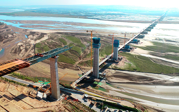 一橋飛架南北,天塹變通途。近日,臨猗黃河大橋迎來喜訊,在公司XGT6015-8S1的見證下,主橋99米最高墩澆筑完成,大橋下部結(jié)構(gòu)關(guān)鍵節(jié)點(diǎn)施工取得新成績。