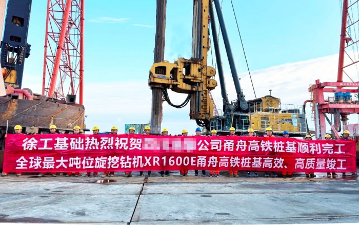 從西堠門公鐵兩用大橋施工現(xiàn)場傳來喜訊,徐工XR1600E旋挖鉆機(jī)率先完成大橋主墩6.3米超大直徑鉆孔樁,較計(jì)劃工期大大提前。