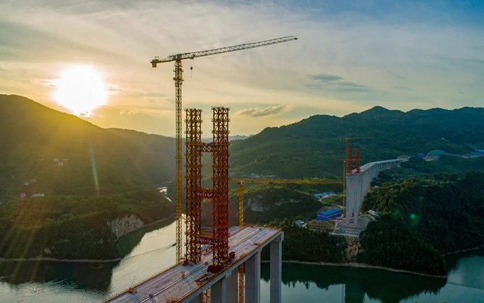 項(xiàng)目位于貴州鳳岡、石阡、思南三縣交界處,該區(qū)域地質(zhì)條件復(fù)雜、天氣多變、空氣潮濕,嚴(yán)重影響項(xiàng)目施工進(jìn)度。徐工塔機(jī)憑借著高效、安全、可靠的產(chǎn)品性能完美適應(yīng)施工現(xiàn)場(chǎng)環(huán)境,為大橋高質(zhì)量、高安全、高效率施工提供有力保障,為德余高速公路建設(shè)按下“快進(jìn)鍵”。