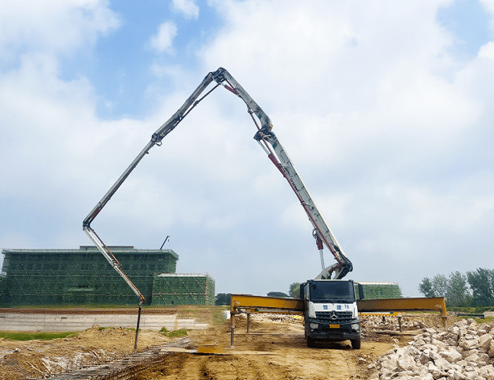 其超長臂架可全面覆蓋施工區(qū)域澆筑范圍,搭載的智能控制系統(tǒng)實現(xiàn)混凝土精準(zhǔn)輸送,顯著提升施工效率。