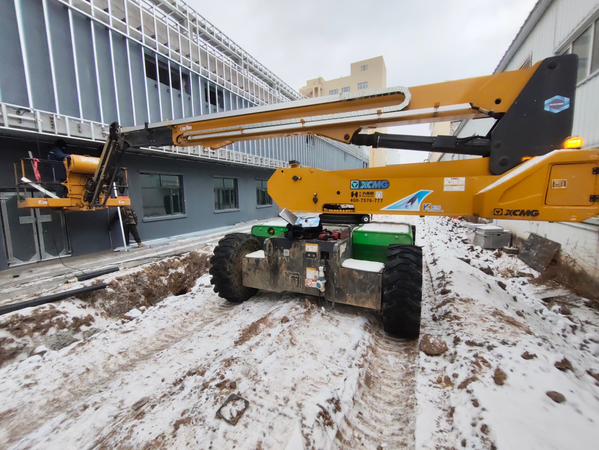 在黑龍江哈爾濱北大荒綠源冷鏈管理中心建設(shè)現(xiàn)場,冬日的冰雪覆蓋著施工場地,徐工高空作業(yè)平臺卻依舊高效運轉(zhuǎn),成為項目外立面施工的核心設(shè)備。