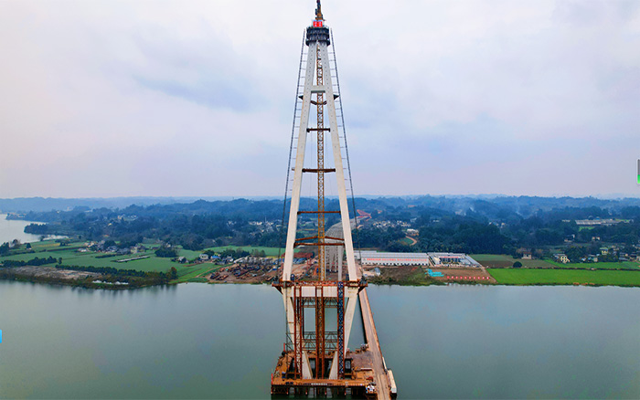 漢陽(yáng)湖岷江特大橋主塔順利封頂