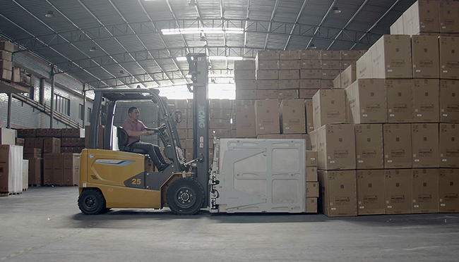 該客戶之前使用的燃油車,成本高、噪音大、污染重,隨著使用年限的增加維修費(fèi)用也越高,因此節(jié)能環(huán)保的電車替代燃油車迫在眉睫。結(jié)合施工環(huán)境及家電搬運(yùn)需求,徐工叉車為客戶定制了鯤鵬系列2.5噸電動叉車。