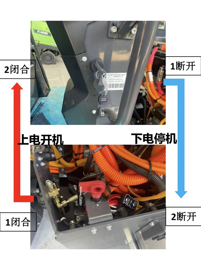 整機(jī)入庫前應(yīng)檢查電池SOC并調(diào)整至60%~80%,嚴(yán)禁低于40%。入庫前需清理外觀灰塵、檢查電氣接口及高壓電池包外觀完好性。確認(rèn)SOC區(qū)間后,斷開蓄電池電源開關(guān)。