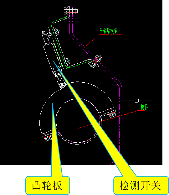 (3)安裝位置:安裝在平臺轉(zhuǎn)柱中間,開關(guān)圍繞凸輪板旋轉(zhuǎn)。