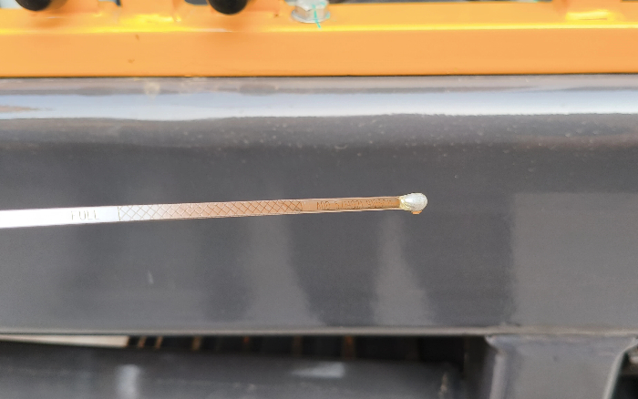 2. 每天開工前應(yīng)冷車檢查機油尺,避免因油液的液位高低造成發(fā)動機的損壞。液位高于油尺——阻力大、高溫、燒機油;液位低于油尺——潤滑不足、拉缸。