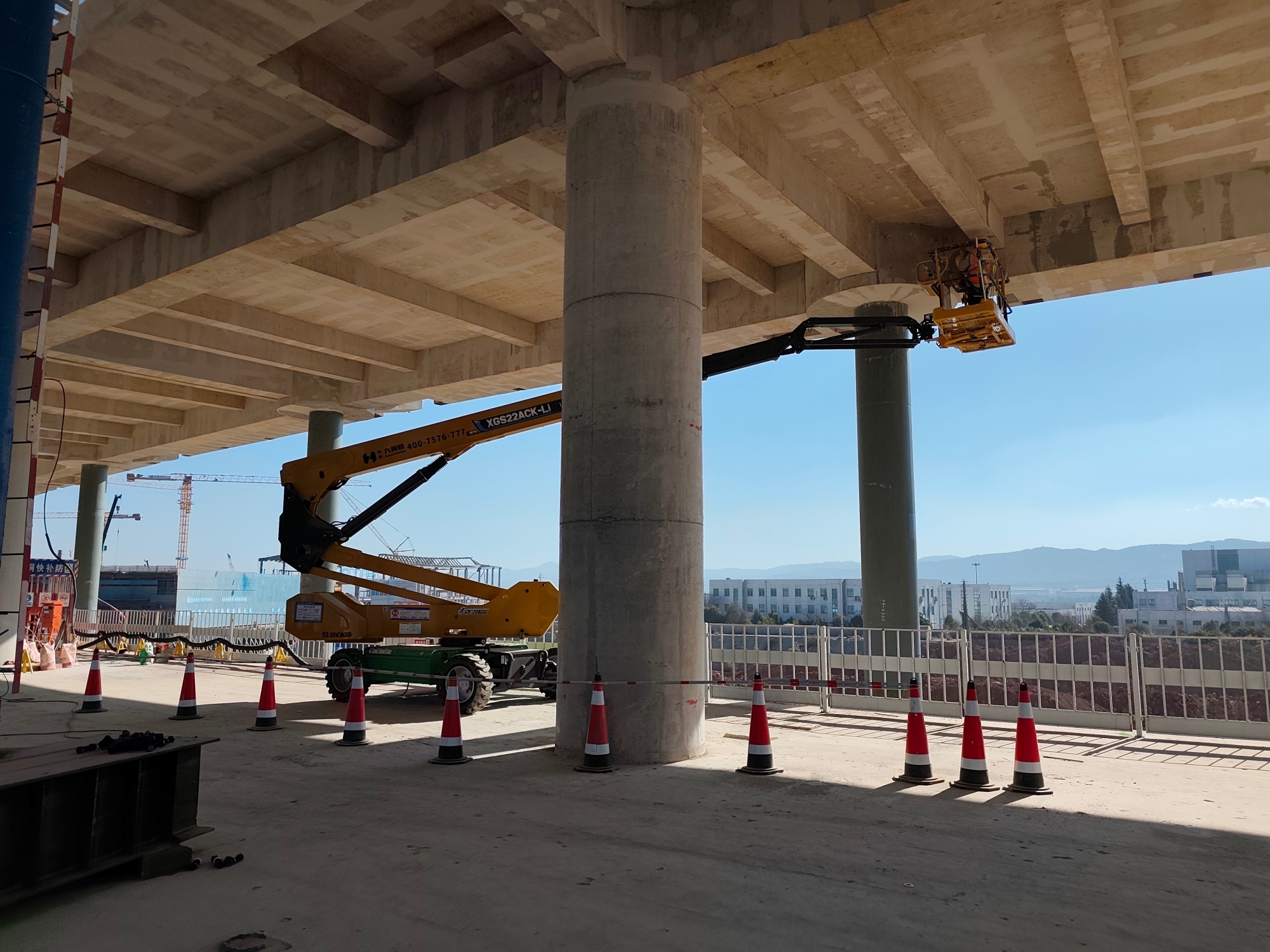 T2 航站樓采用大跨度異形曲面結(jié)構(gòu),作業(yè)空間復(fù)雜、精度要求高。徐工 XGS22ACK-Li 最大作業(yè)高度達(dá) 22.9 米,最大作業(yè)幅度 15.4 米,可輕松覆蓋航站樓主體施工區(qū)域;平臺(tái)額定載荷最高 460kg,滿足多人同步作業(yè)與工具材料搭載需求,大幅提升施工效率。