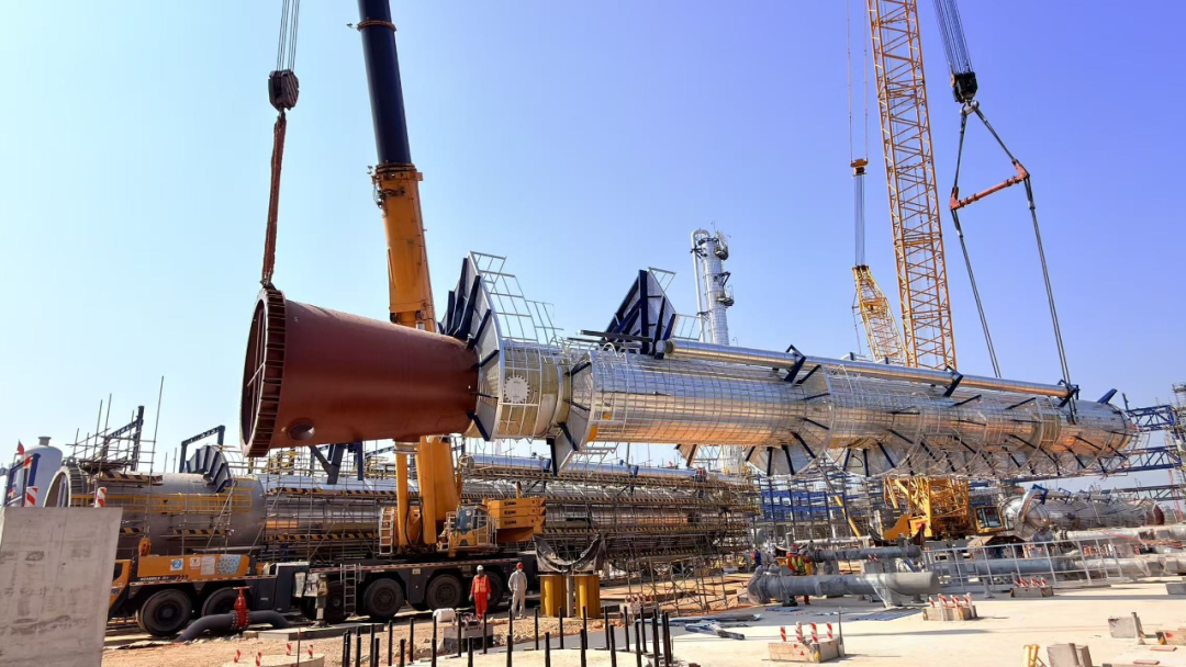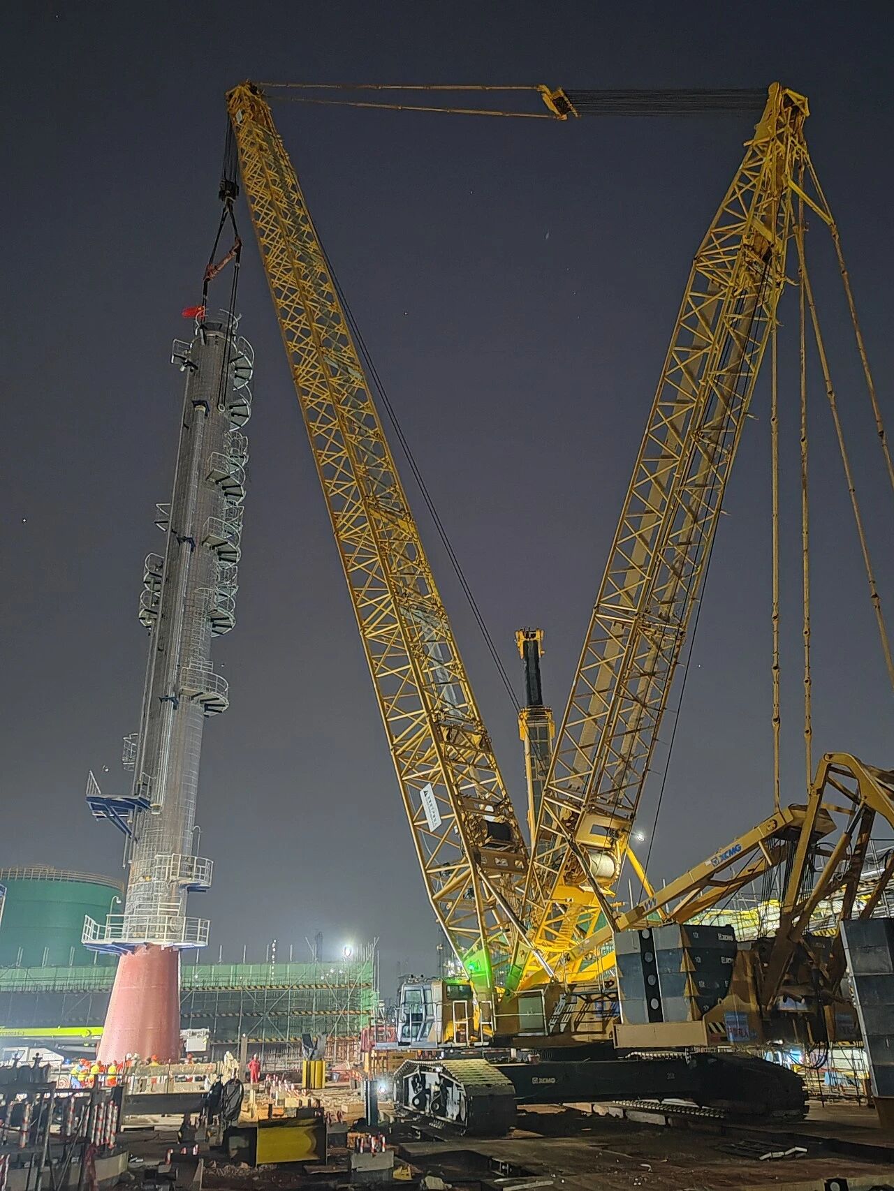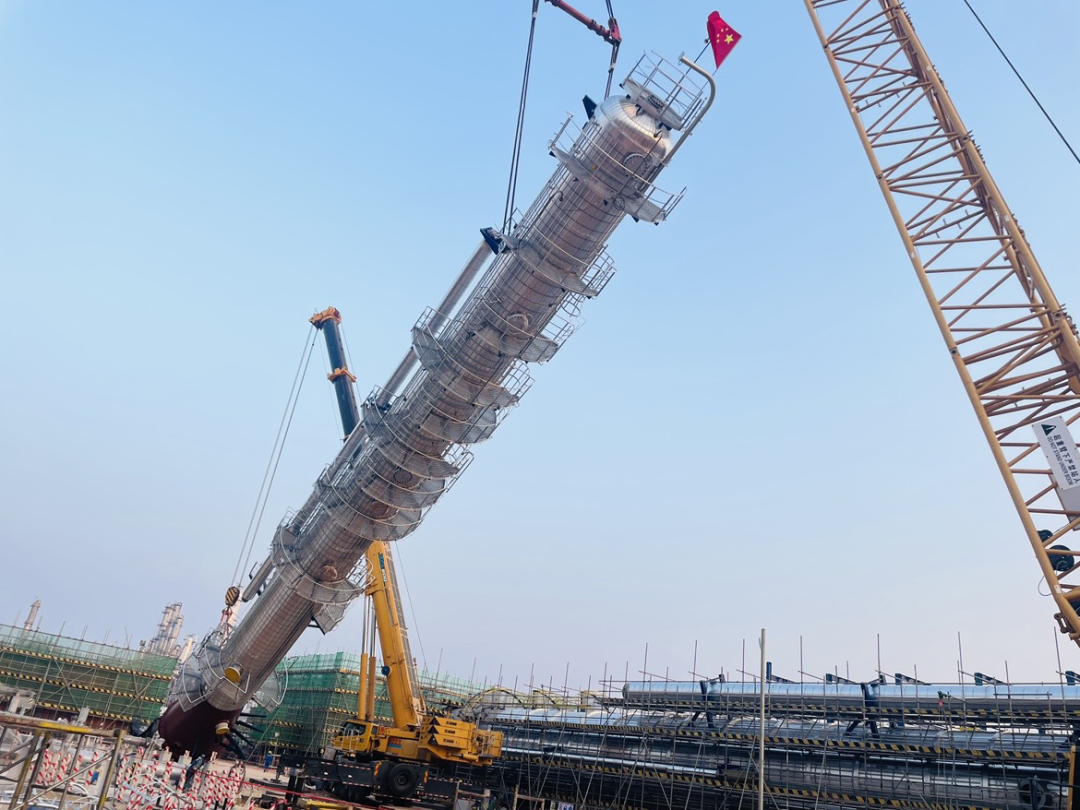 這座石化裝置的“擎天立柱”騰空而起,如藝術(shù)品般嵌入預(yù)定位置,全程零偏差、零風險。這不僅是設(shè)備安裝的里程碑,更是中國制造實力的巔峰展現(xiàn)!