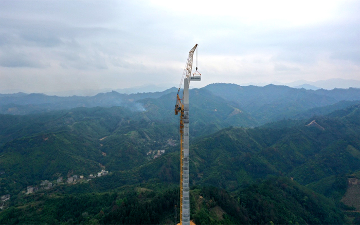 大部件分體運(yùn)輸、現(xiàn)場(chǎng)快速組裝,將超長(zhǎng)超寬構(gòu)件化整為零,翻山越嶺,運(yùn)抵山頂。